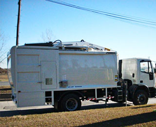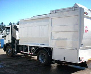 Equipo lavacontenedores, modelo LCSS-6000 montado sobre chasis, apto para el lavado de contenedores soterrados y superficiales de doble gancho, mediante proyección de chorros de agua de alta presión desde una barra fija y cabezales lavadores ubicados en la tolva del lavado trasero. Compuesto además por un depósito único dividido en tanques de agua limpia con capacidad total de 6000 lts. (2 x 3000 lts) y tanque receptor de agua sucia de 6000 lts: el izaje de los contenedores se realiza mediante dispositivo de brazos articulados hidráulicos, tipo hidrgrua, ubicado detrás de la cabina con sistema de enganche de doble gancho accionamiento eléctrico proporcional y manual por comando radio control remoto, carrete de 15 mts. de manguera ½” con lanza especial para lavado de alta presión.